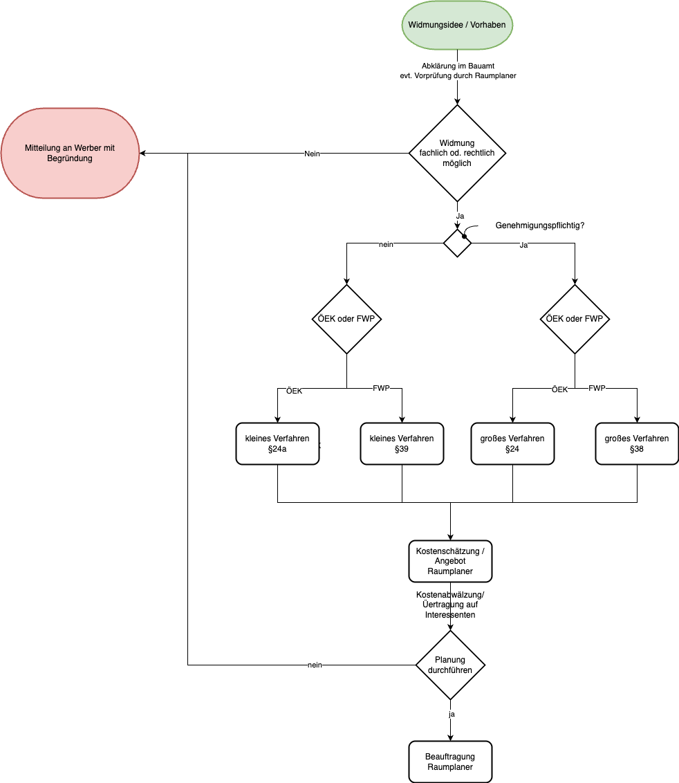 FWP: Verfahren nach § 39; § 38 Abs. 1–8 ; ÖEK: Verfahren nach § 24a, § 24 Abs. 2, 3, 4, 6 bis 8